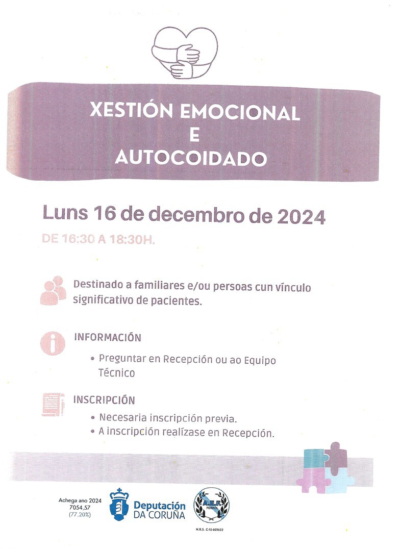 de Prevención de Recaídas, estase a impartir nos concellos de Ferrolterrada o Taller gratuito "XESTIONA AS TÚAS EMOCIÓNS"