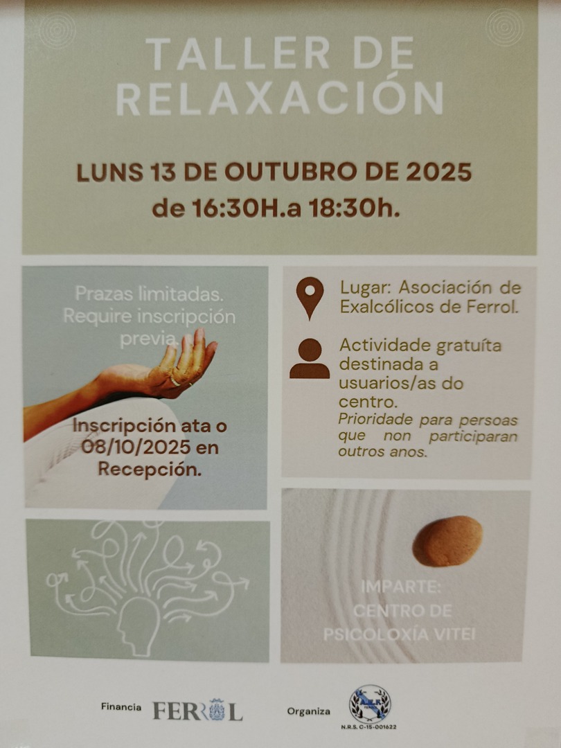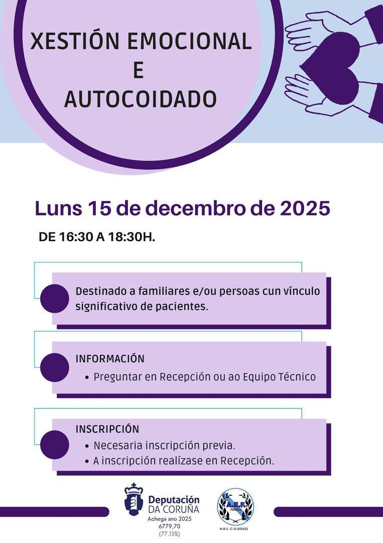 de Prevención de Recaídas, estase a impartir nos concellos de Ferrolterrada o Taller gratuito "XESTIONA AS TÚAS EMOCIÓNS"